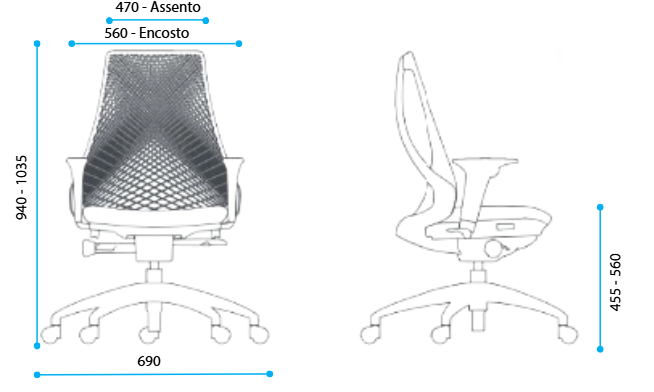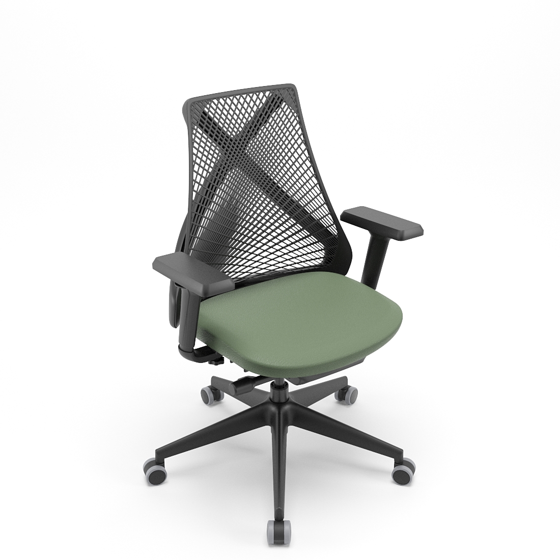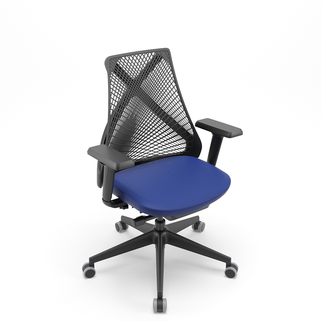 Fusão perfeita entre design, tecnologia, forma e função. Com mecanismo autocompensador, oferecendo conforto personalizado para cada usuário. Encosto, braço e base na cor preta. O encosto é feito em tela termoplástica, macia ao toque e com excelente ventilação — evitando acúmulo de calor e umidade, garantindo bem-estar durante todo o dia.