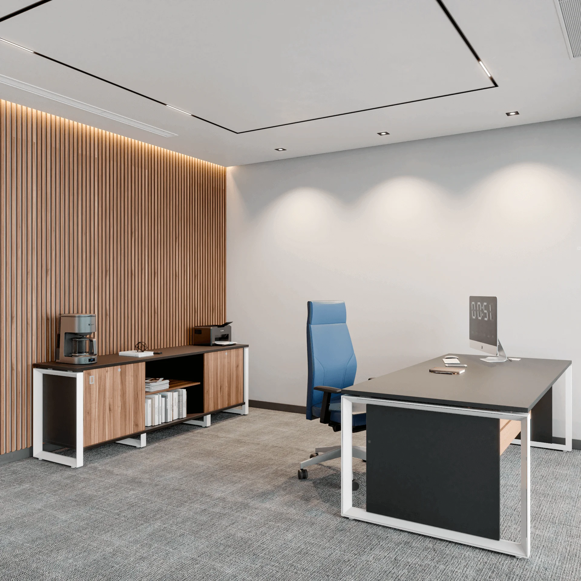 Nossas credenzas podem ser utilizadas de forma independente ou em conjunto com as mesas executivas da linha Atto, criando um conjunto harmonioso e funcional.