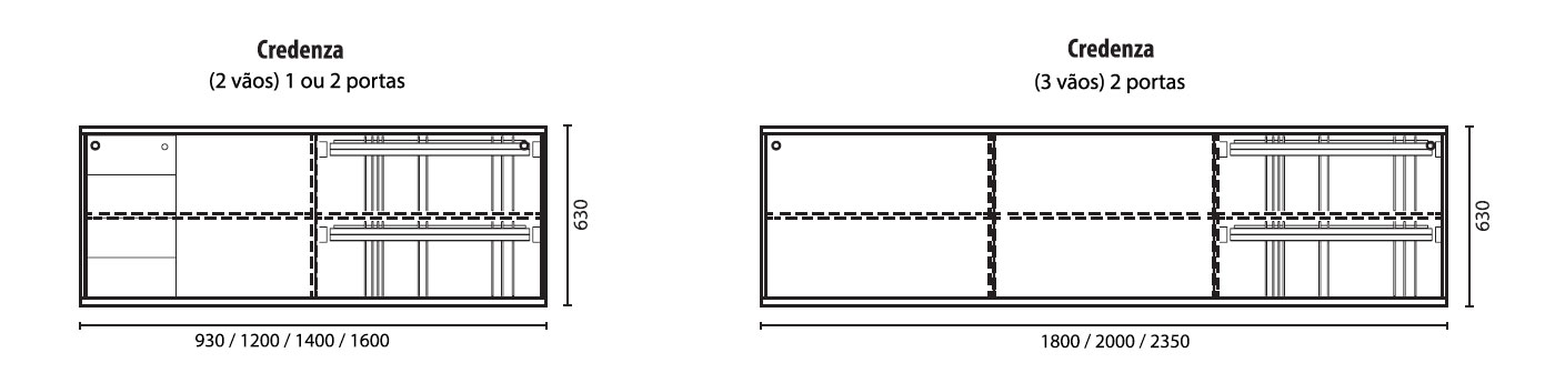 Com variedade de medidas, nossas credenzas se adaptam a qualquer layout e necessidade, otimizando o espaço e oferecendo soluções personalizadas de armazenamento.
