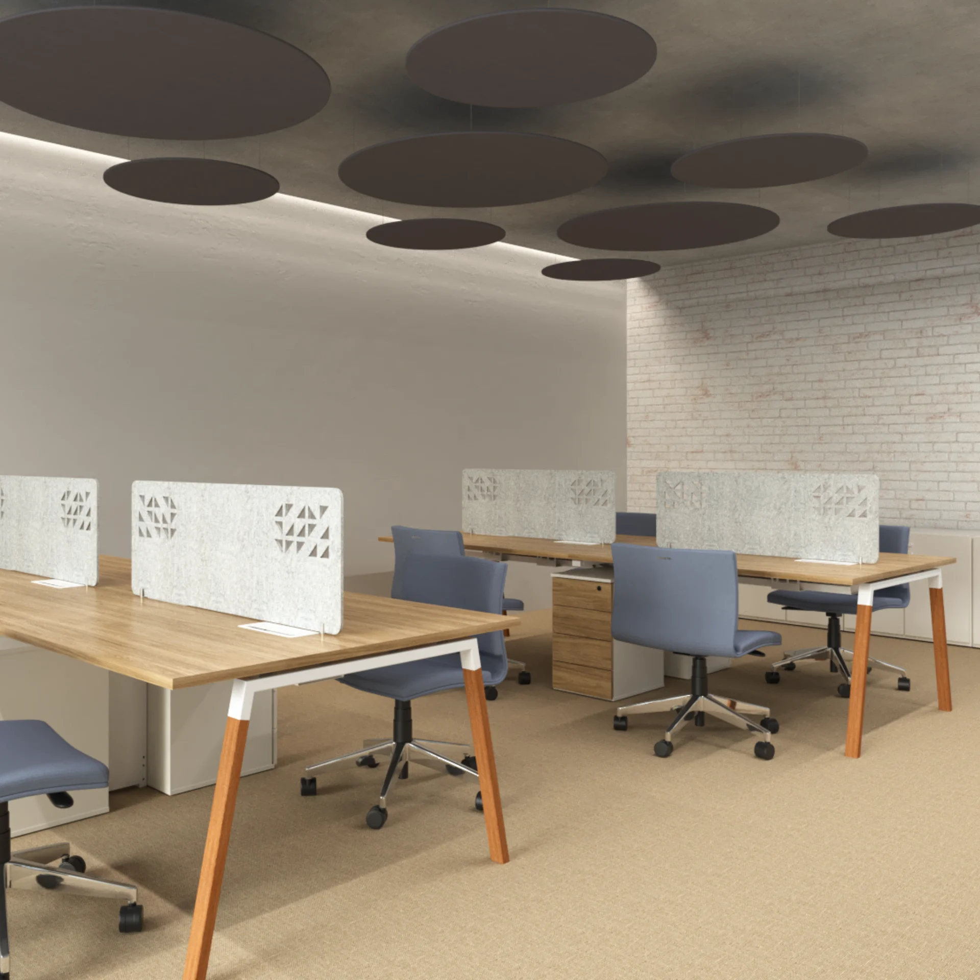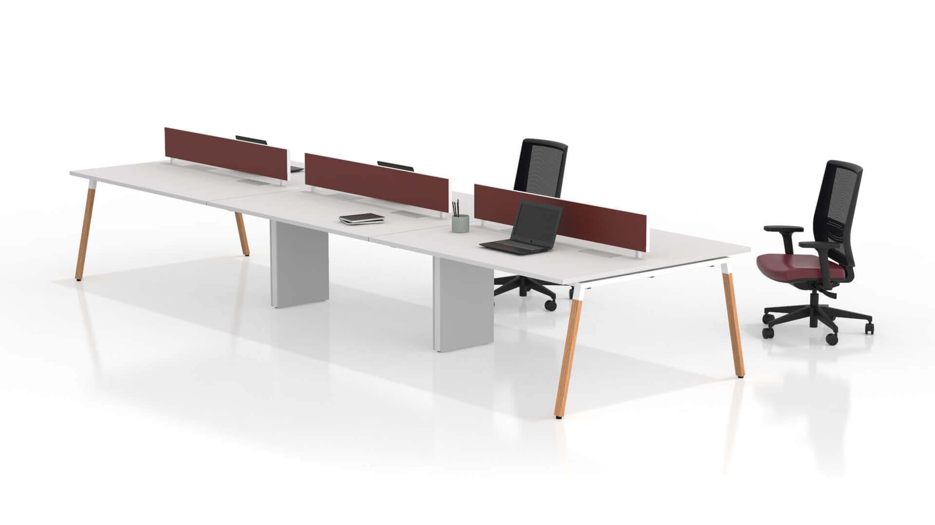 Confeccionada em MDP de 25 mm, é personalizável em diversos tamanhos e cores, permitindo a criação de espaços de trabalho únicos e adaptados às suas necessidades. Os painéis divisores, em vidro, tecido, madeira ou lã de PET, adicionam um toque de elegância e privacidade.