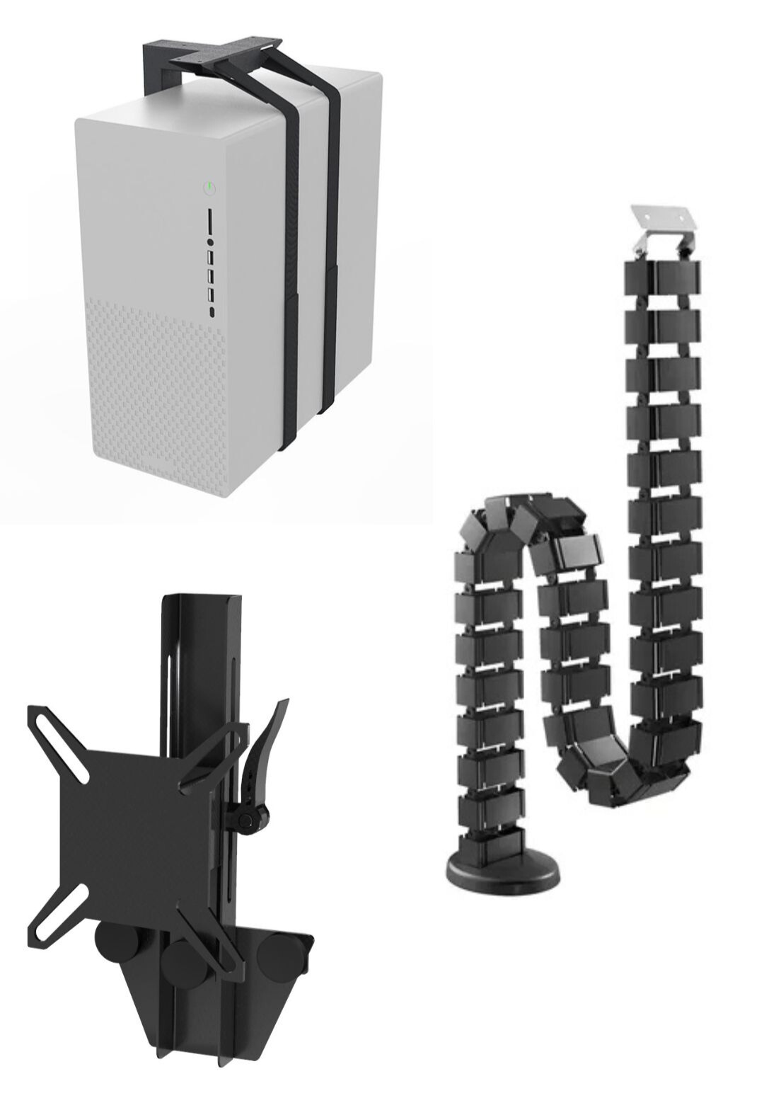 Encontre os acessórios ideais para seus equipamentos e fiação. Suportes para CPU, monitores e vértebra para gerenciamento de cabos oferecem soluções práticas e personalizadas, garantindo melhor organização e aproveitamento da sua Mesa SD.